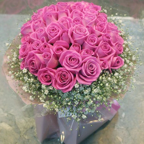 핑크장미로 풍성하게 꾸민 꽃다발입니다.